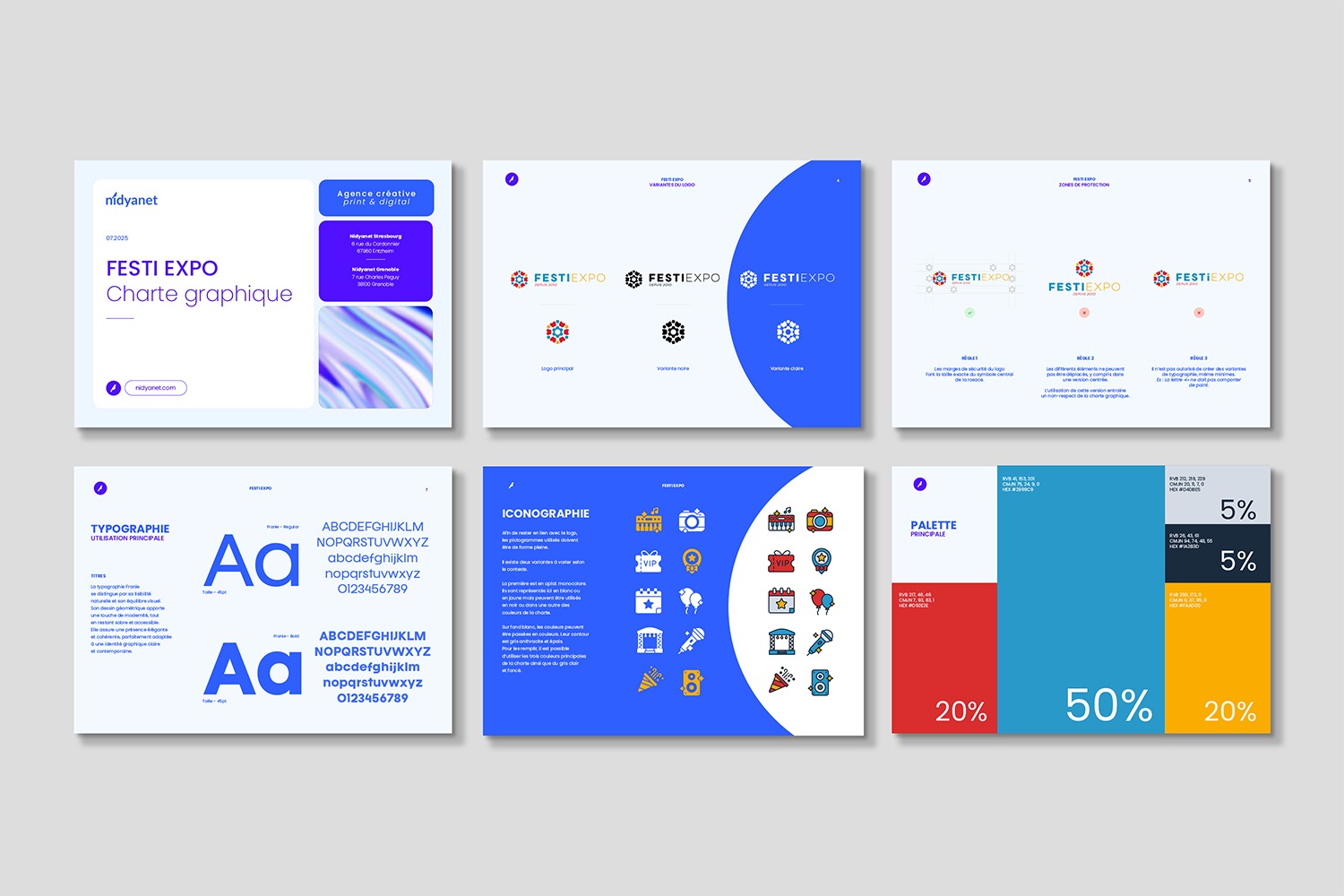 L’objectif du projet Festi Expo était de créer une identité visuelle forte, cohérente et mémorable capable de refléter l’esprit dynamique et professionnel de l’événement, tout en facilitant la reconnaissance et l’impact auprès du public et des partenaires. Dans un contexte événementiel exigeant, il s’agissait de concevoir un univers graphique distinctif qui puisse se déployer efficacement sur l’ensemble des supports clés : du logo à la charte graphique, en passant par les plaquettes commerciales et les cartes de visite, afin de structurer la communication de l’événement, renforcer sa crédibilité et maximiser l’engagement des participants et exposants.